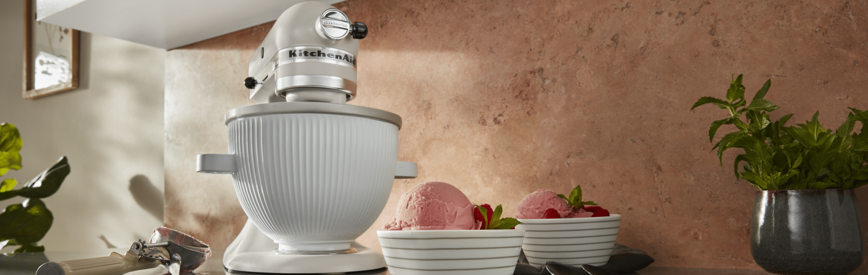 Like any good meal, this article also ends with dessert. Thanks to the KitchenAid® Ice Cream Maker Attachment, you can make ice cream and frozen yogurt on your own. Build custom blends by adding your chosen fruit, chocolates, cookies, caramel or anything else you think would treat your sweet tooth. Create unique flavors like lavender and honey, and Thai tea ice cream, or reinvent a classic with s’mores ice cream bars.