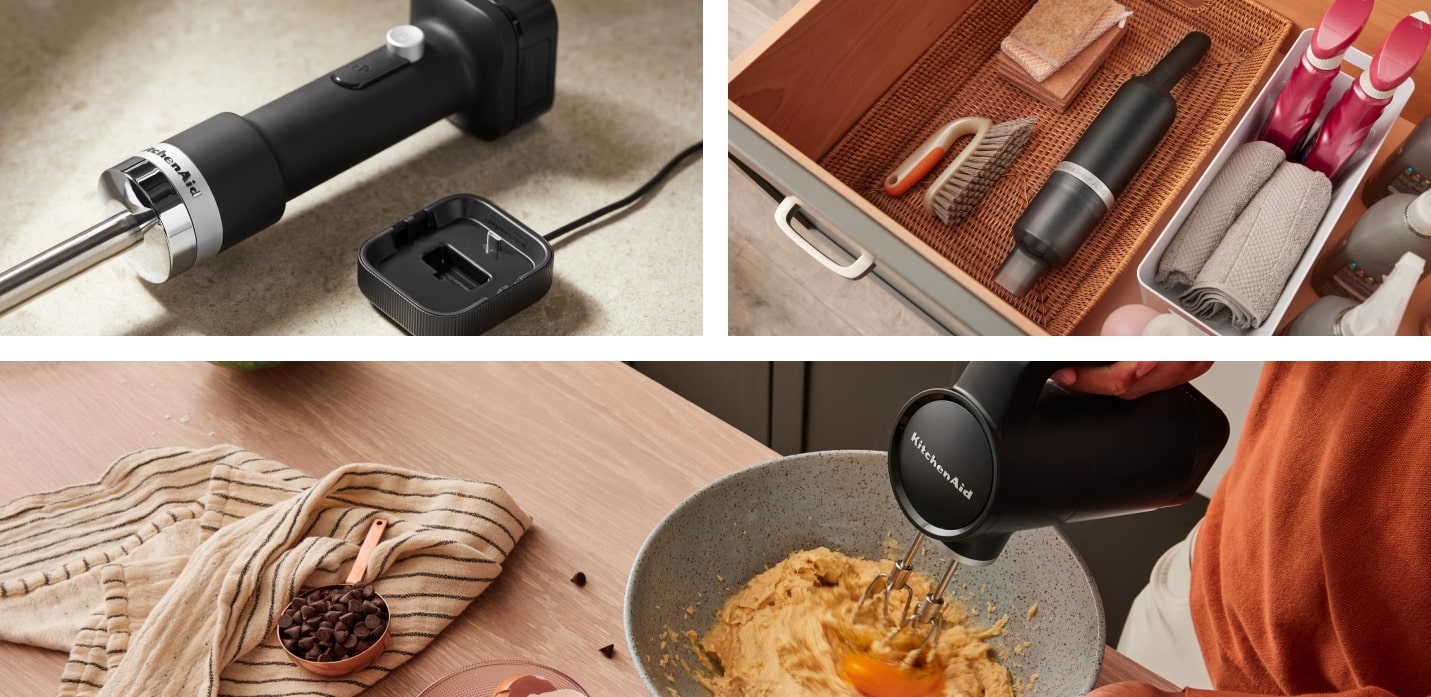 Not only has cordless innovation changed how and where you can make, it’s transformed the way the kitchen looks as well. Fewer cords create a sleeker, less cluttered kitchen with more valuable countertop real estate. Appliances in the KitchenAid Go™ Cordless System are easy to tuck away in a cabinet or drawer.