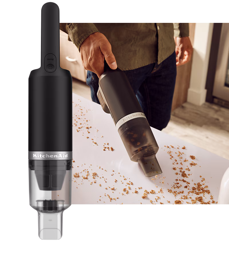 Keep your kitchen countertops clean and pick up crumbs, coffee grounds and other dry meal prep messes with the KitchenAid Go™ Cordless Kitchen Vacuum. Designed with your kitchen in mind, the sleek and compact vacuum easily fits into drawers and helps you clean hard-to-reach spaces with the crevice tool. The rechargeable 12V max battery provides up to 20 minutes of continuous runtime1 for quick cleanup as you create.