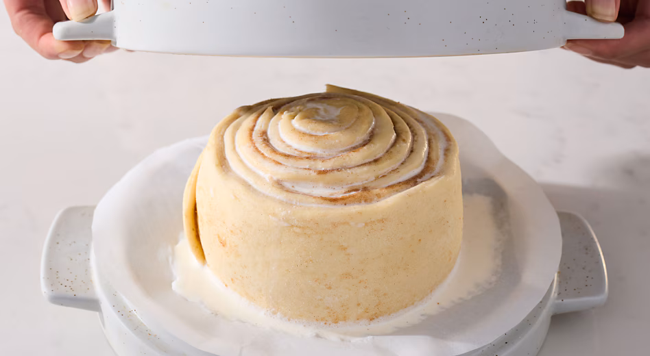 Place your bakeware on a center rack and bake according to your recipe instructions. If following the Yummly recipe, you will drizzle the roll with heavy cream about halfway through. Prepare your glaze while your bread bakes and your home fills with tempting aromas.