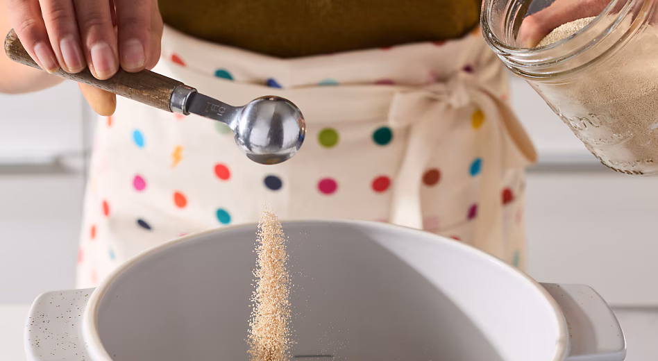 Before making your cinnamon roll bread, gather your equipment and ingredients for all three parts of the recipe: Dough, filling and icing. If using the KitchenAid® Bread Bowl accessory, fill it with hot water, empty and pat dry. This will help create a warm environment to encourage the yeast to bloom.