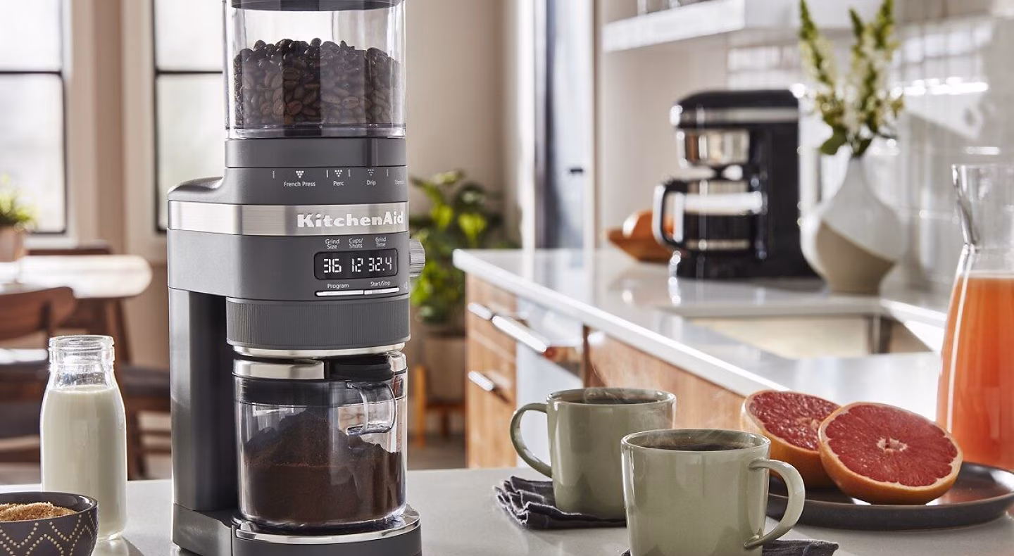 Whichever method you choose, freshly ground coffee beans will elevate your results from ho-hum to brimming with joy. The KitchenAid® Burr Coffee Grinder lets you fine-tune your grind for your ideal results. Opt for a medium grind for flat-bottom filters and medium-fine grind for cone-shaped filters.