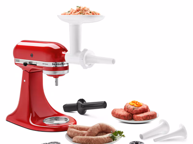 Cooks can add the Sausage Stuffer Kit to any KitchenAid® stand mixer with the Food Grinder Attachment to create homemade sausage links. The kit includes one small, 3/8" stuffer tube ideal for breakfast sausages as well as one 5/8" tube perfect for creating savory Bratwurst, Italian or Polish Sausage.