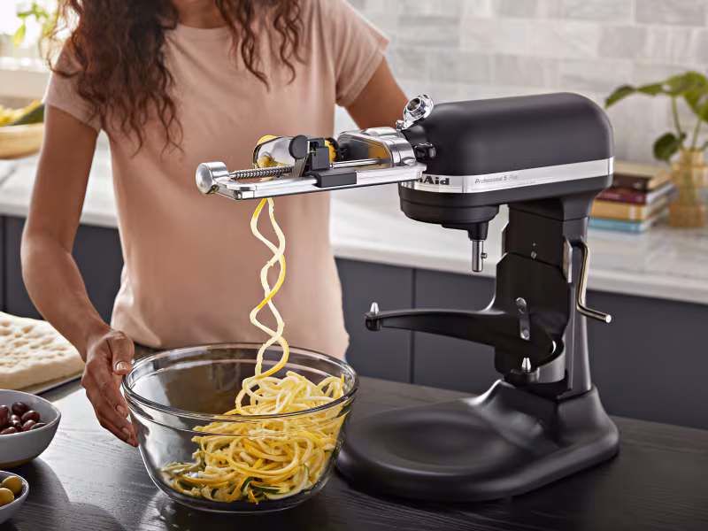 Lasagna lovers will thrive with the Vegetable Sheet Cutter Attachment from KitchenAid brand. Cooks can choose a thin or thick blade to slice fruits and vegetables into lasagna-sized sheets. Then, with a little creativity, they can experiment with reinventing snacks, layering sheets for new versions of lasagna or putting a twist on classic wrap recipes.