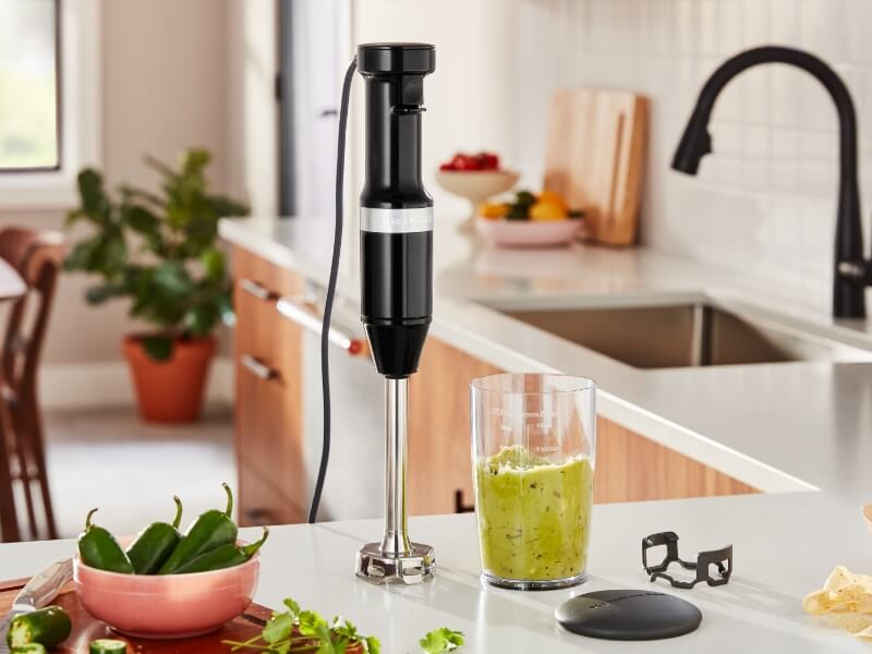 KitchenAid® hand blenders put the power to puree, crush and blend ingredients into the palm of a cook’s hand. Hand blenders are simple to maneuver and can quickly blend ingredients without the need to dirty several dishes. Their compact, lightweight design means they’re easy to use in nearly any bowl, pot or pan, and it makes them a great gift for cooks that are short on storage space.