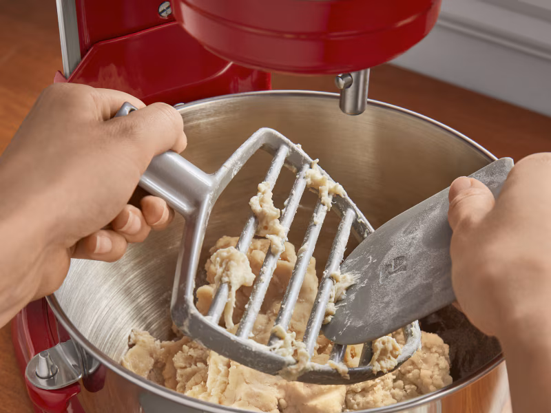 This versatile tool connects to KitchenAid® stand mixers to create light and airy pastry dough with less effort. In addition to cutting cold butter into doughs, the pastry beater can quickly shred meats and mash fruits and vegetables. Help your favorite baker create flaky biscuits, scones and more using the pastry beater accessory.