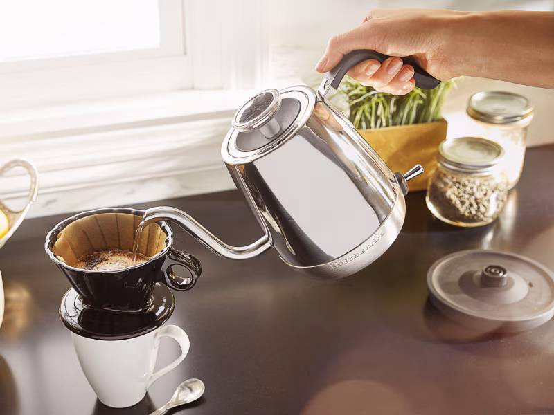 Bring the cafe to the kitchen for your coffee-loving friends when you gift them a KitchenAid® electric kettle. Select kettles feature dual wall construction that keeps contents hot so it’s ready to go when they are. Select models offer temperature control for water that’s just right, while features, like the water level gauge, ensure there’s enough to go around for their favorite tea, coffee or cereal.