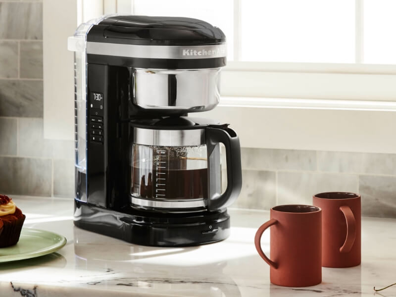 This coffee maker is the perfect kitchen gift for coffee lovers looking for tech to enhance the flavor of their morning brew. The Spiral Showerhead of the KitchenAid® 12 Cup Drip Coffee Maker evenly saturates coffee grounds, resulting in consistently delicious coffee. Choose between regular and bold strengths to satisfy different tastes and wake to the aroma of freshly brewed coffee with a 24-hour programmable timer.