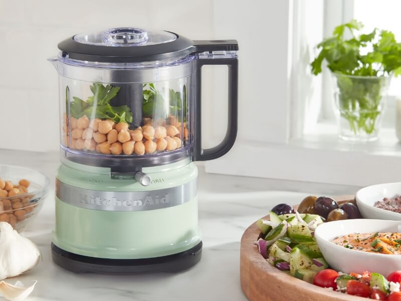 Cooks can take on new challenges with KitchenAid® food processors that let them chop, puree, slice, shred, mince and even knead ingredients in one compact appliance. Depending on the model, cooks can leverage anywhere from 7 to 13 cups of capacity and multiple blade options to craft newly discovered and go-to recipes alike. From garden vegetable hummus to artisan pizza and everything in between, food processors from KitchenAid brand provide the power and precision to bring a range of recipes to life.