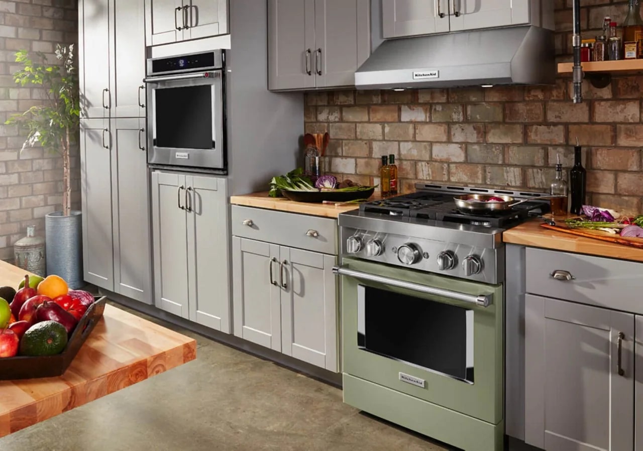 Express yourself through colorful Commercial Inspired Ranges that come in nine curated colors by KitchenAid. Go beyond conventional stainless or black with a truly eye-catching pop of color like the Avocado Cream Range by KitchenAid, which brings in the earthy vibes of current kitchen interior design trends. Using a cool, attractive hue like this light green makes for a delightful complement to a number of themes, kitchen décor and color palettes. It also creates a fresh, timeless look.