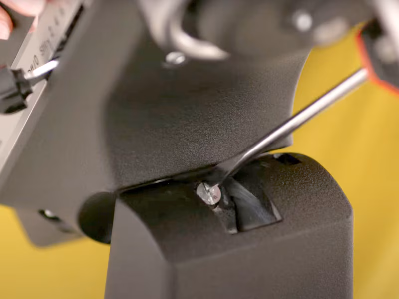 Turn the screw very slightly counterclockwise (left) to raise the accessory, or clockwise (right) to lower it.