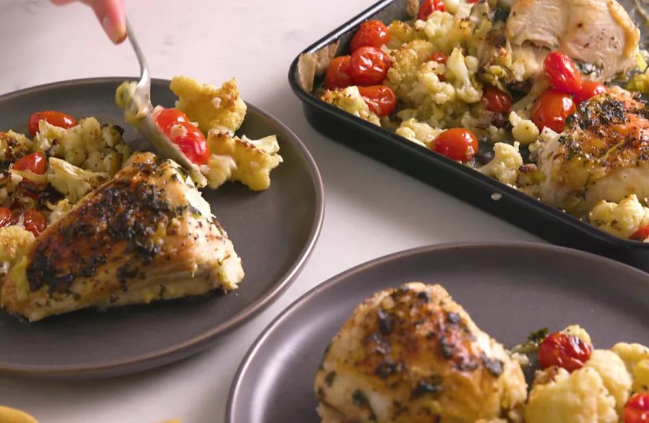 To make sure your chicken cooks evenly, cover the butterflied breasts with parchment paper and pound the breast with a meat mallet until it’s all the same thickness. This will also ensure the chicken cooks all the way through without drying out. If your air fryer or oven has a broil setting, you can switch over to it in order to finish off your cheese. The broil setting will activate only the top heating elements, where you need it most.