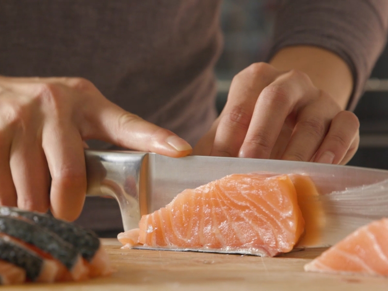 When the timer ends, check the salmon to make sure it’s thoroughly cooked. It’s ready when your meat thermometer reads 145°F (in the thickest part) or if the flesh of the salmon is no longer translucent and easily flakes with a fork. Be careful not to under or over cook it.