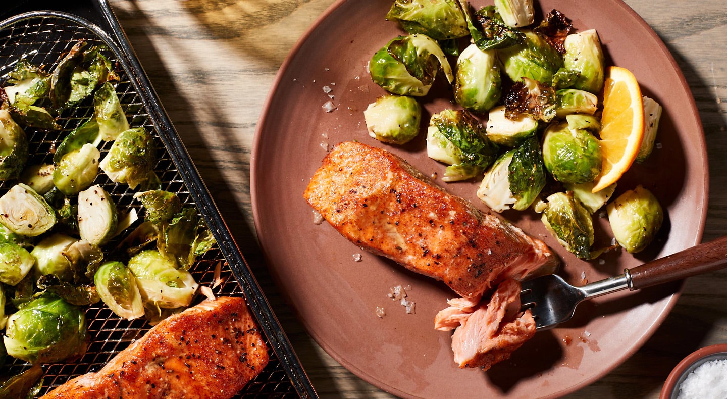 There are many side dishes that can turn your salmon into a mouthwatering meal. Simply pair it with Brussels sprouts or grains like a quinoa salad or beet risotto, or savor it with a warm artichoke salad or potato pancakes with spiced applesauce. Consider adding a dessert such as a delectable, air-fried strawberry pie.