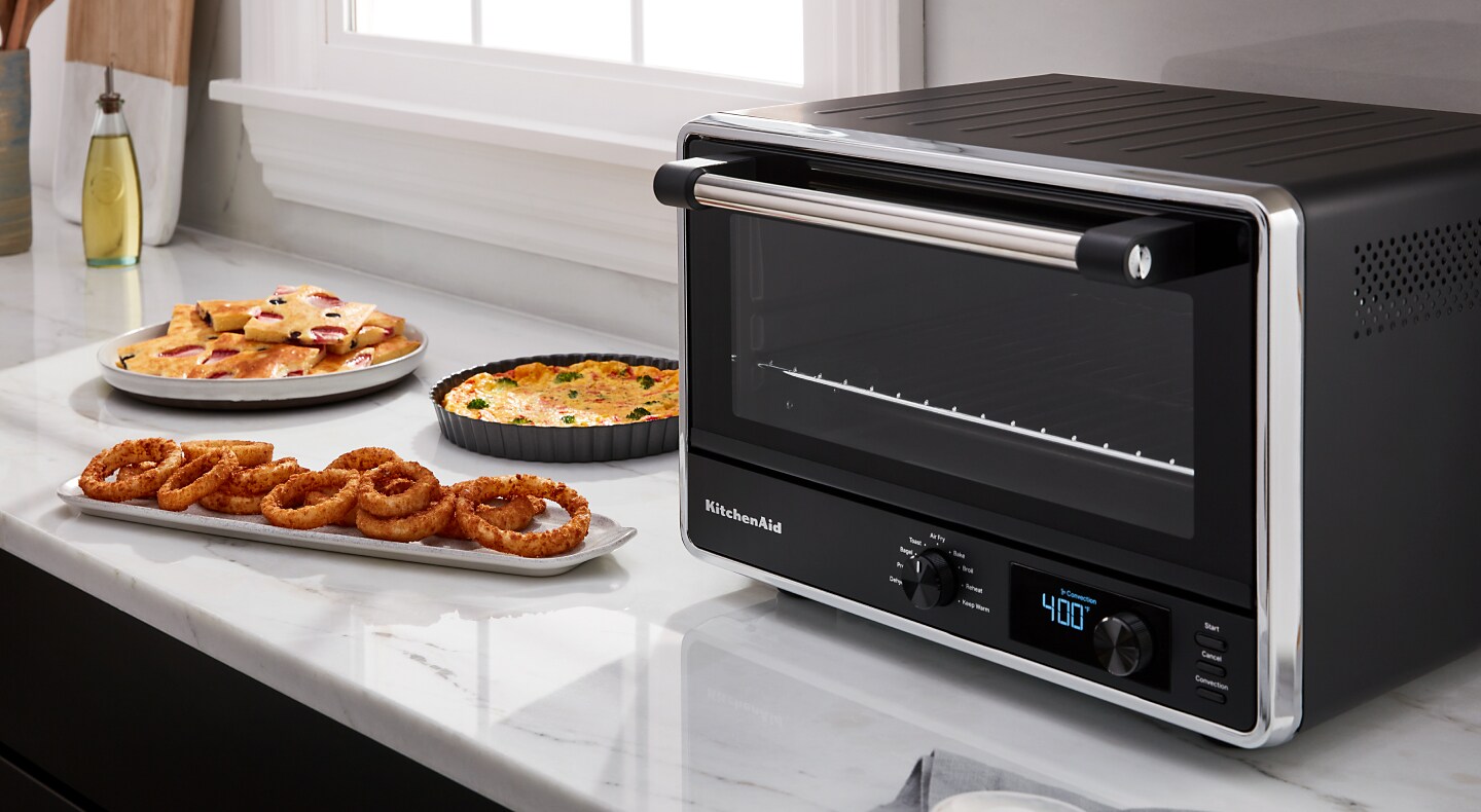 Raw meat can be cooked in most toaster ovens if they are able to reach high enough temperatures. It is important to make sure that the meat is cooked to the correct internal temperature and that you follow proper food heating guidelines. Steak, for example, should be cooked to an internal temperature of 145°F. You can cook meats such as chicken, steak and pork in most air fryers including all KitchenAid® countertop ovens. Select KitchenAid® countertop ovens come with a temperature probe that alerts you when your recipe has reached the desired temperature.