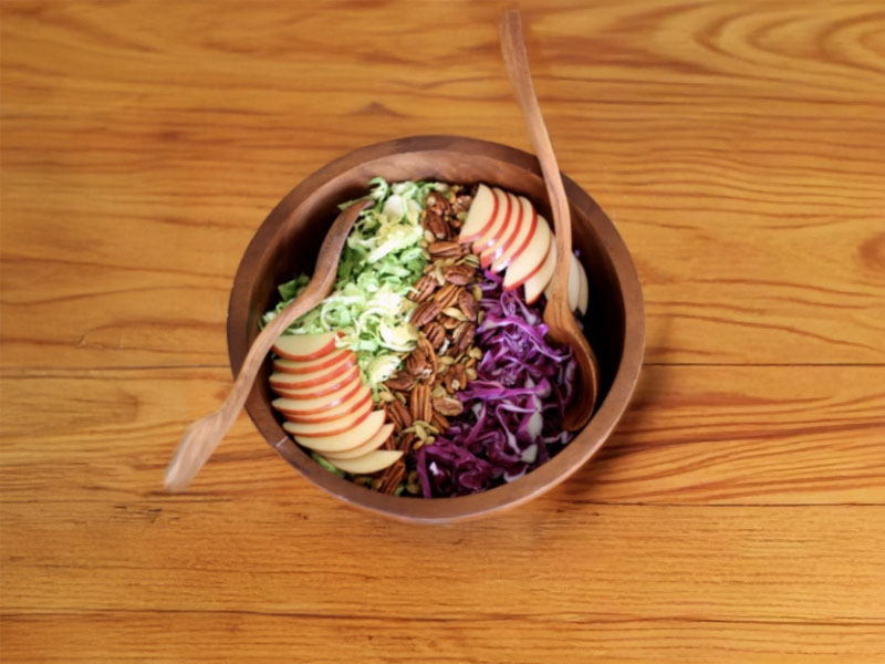 Savor fall flavors any time of year with Brussels sprouts and cabbage along with a burst of sweetness from apples and maple syrup.
