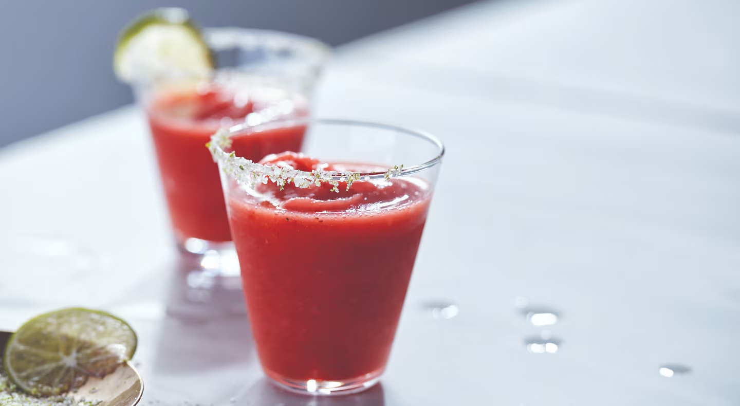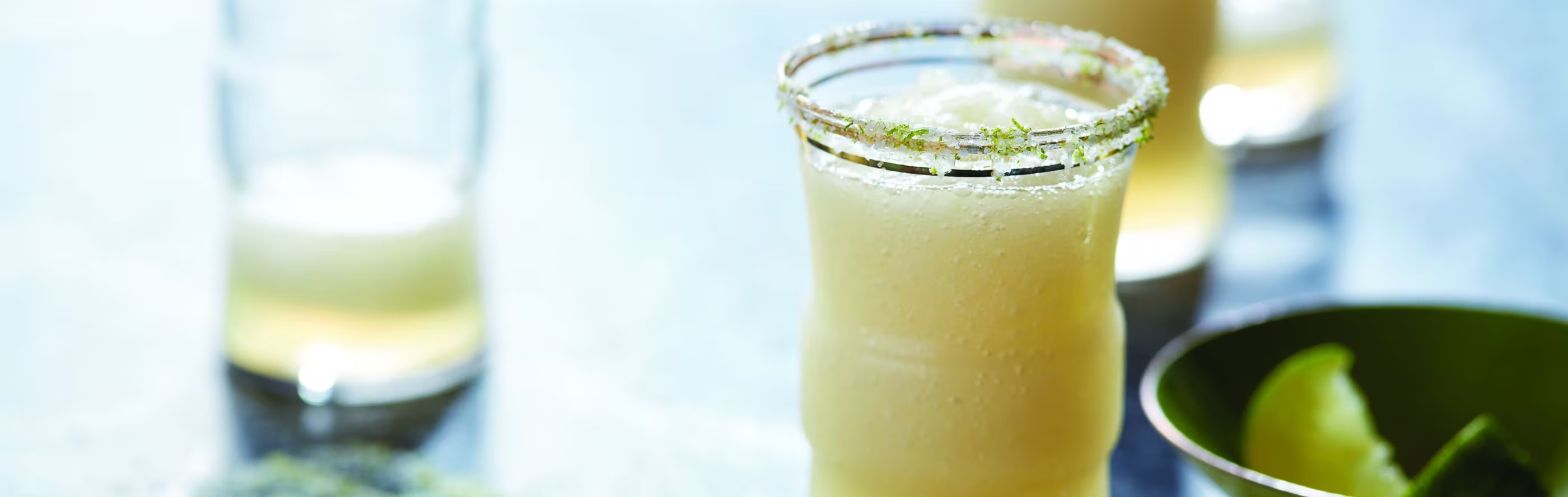 A classic frozen margarita calls for tequila, triple sec and lime juice blended with ice and poured into a glass with a salted rim. But, it’s easy to customize this drink by adding fresh fruit puree, sweeteners, herbs and more. With the help of a KitchenAid® blender, you can create frozen margarita combinations that will complement your meal, show your creativity and combine unique flavors. Follow the recipe overview below to create your own classic frozen margaritas. Adjust the ratios to your personal taste. If adding additional fruits or juices, you may want to increase the base ingredients of tequila, triple sec and lime as well so your classic margarita flavor isn’t lost.