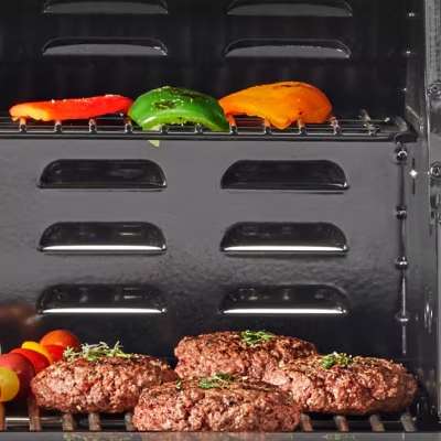 Enjoy grilling year round with the KitchenAid® Smart Oven+ 30” Combination Oven with Powered Attachments. It comes with a grill attachment that minimizes smoke and eliminates the flares common on outdoor grills, and its advanced design heats evenly from edge to edge.