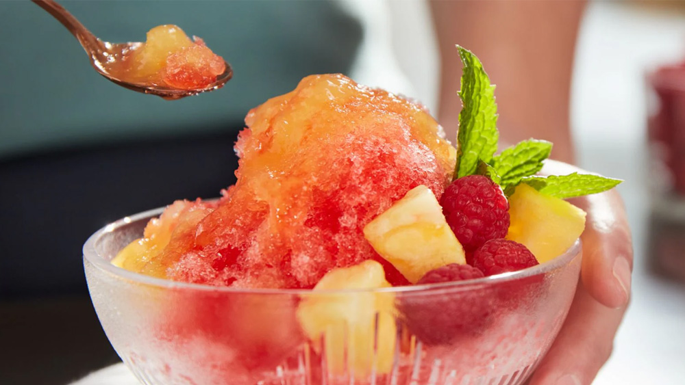 The “snow” in many shaved ice desserts is commonly shaved, or scraped, from a large block of ice. The fluffier texture of this type of frozen treat captures the syrup throughout the dessert, delivering sweetness in every bite.