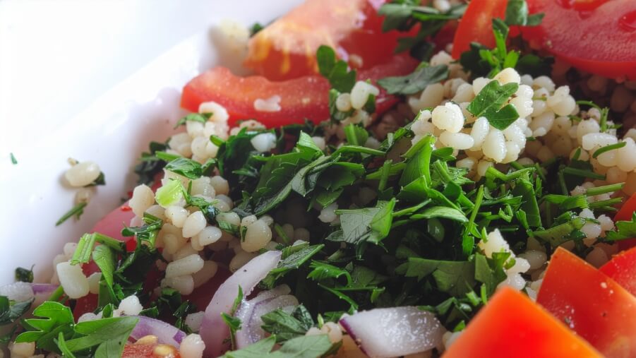 A dish at the very heart of Middle Eastern cooking, tabouli (sometimes tabbouleh) is a salad made from bulgur instead of leafy greens. The combination of the bulgur, vegetables and herbs (especially parsley) makes tabouli a nutrient-rich meal and a light, refreshing alternative to a common salad.