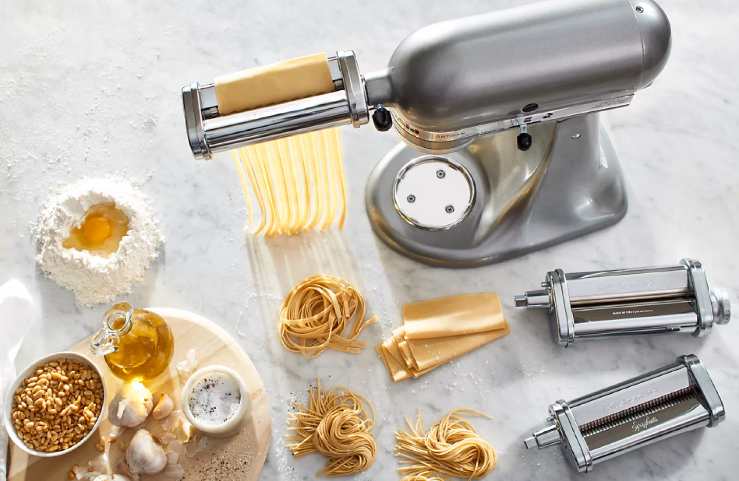 If you’re not sure where to get started making your own pasta, KitchenAid® stand mixer attachments can help. Explore a whole range of pasta attachments that enable you to roll and cut up to four different kinds of pasta, including spaghetti and capellini, or press pasta like rigatoni and fusilli. You can also start with your own customized flour blend by milling your own grains with the KitchenAid® Grain Mill attachment.