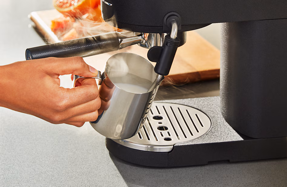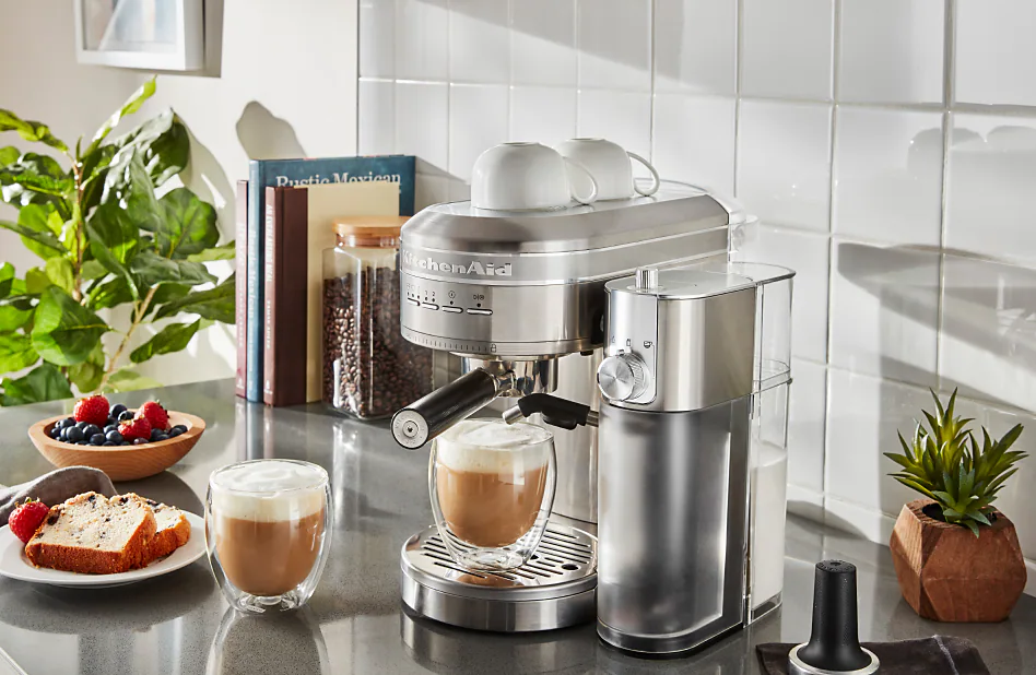 KitchenAid brand offers an automatic milk frother attachment for it’s semi-automatic espresso machines that offers the advantages of a steamer and the convenience of automation. The programmable dosing and a variable micro-foam adjuster allow you to adjust the milk amount and texture to match your taste and preference.