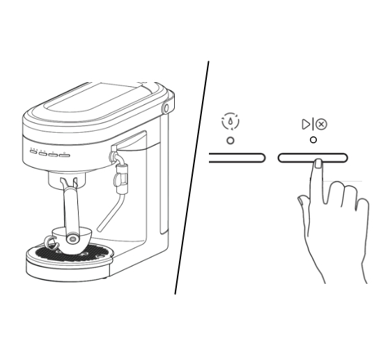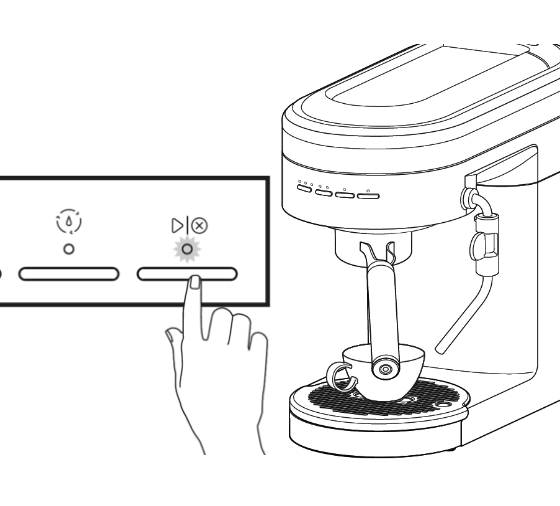 Place your cup below the portafilter and milk dispenser. Press the start button on the Espresso Machine to start the cycle.