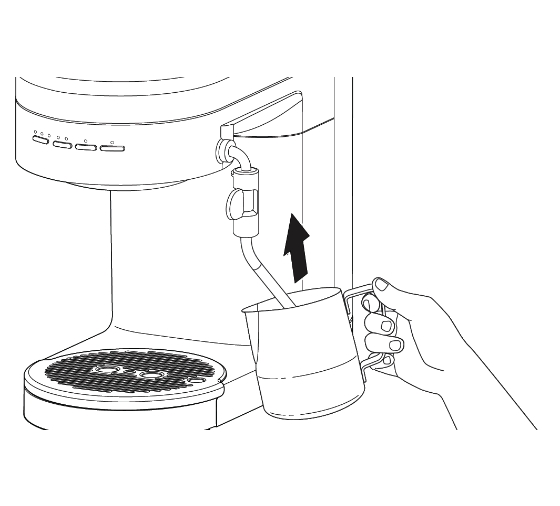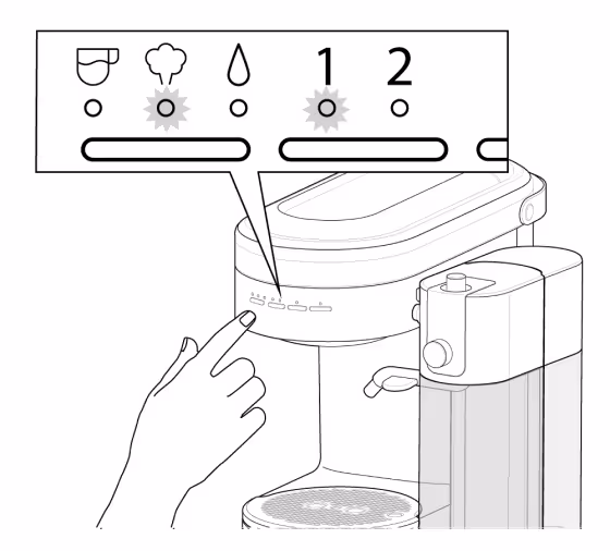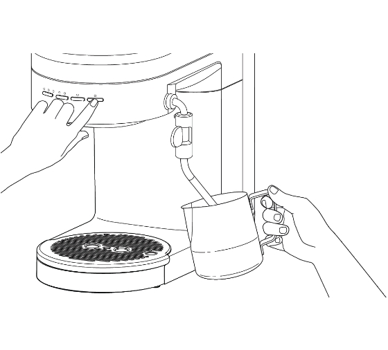 Turn on the Espresso Machine and toggle the Mode button to select Steam. Toggle the Dose button to 1 or 2 (1 for less milk and 2 for more milk).
