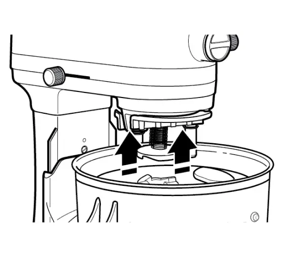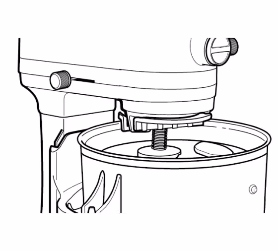 Lower the motor head to engage the drive assembly with the dasher. If the drive assembly doesn’t engage the dasher, slide the drive assembly either back or forward until it does engage the dasher properly.
