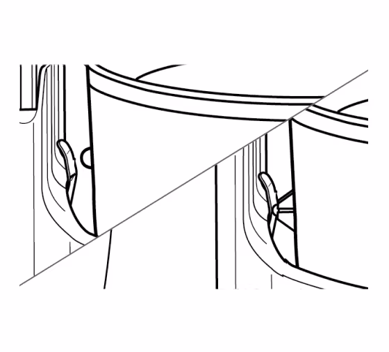 Place bowl-lift handle in the down position. Fit the freeze bowl in place over the locating pins. Press down on the back of the freeze bowl until the bowl pin snaps into the spring latch.