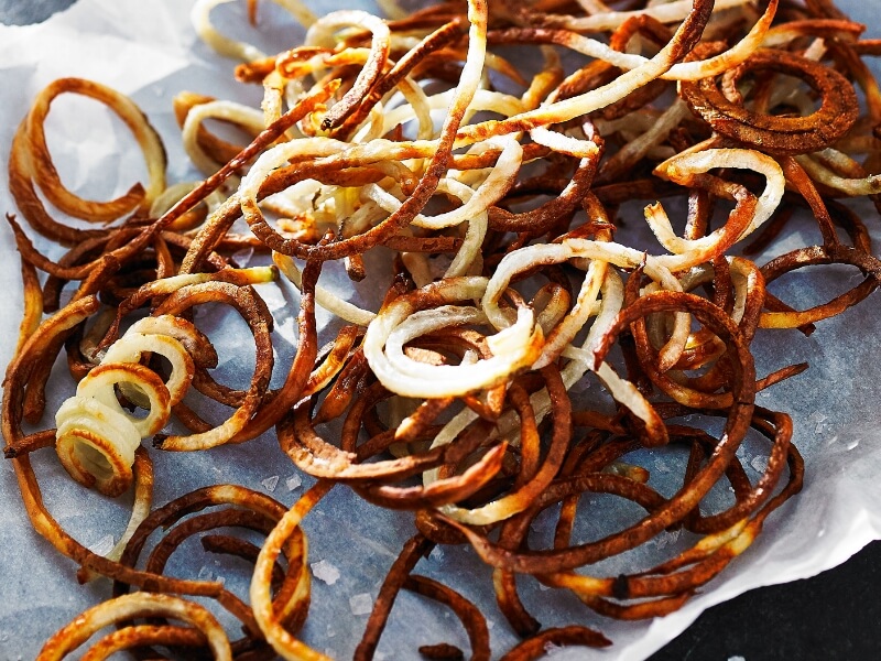 Every burger deserves a delicious side of crispy fries. Make these super skinny shoestrings in your KitchenAid® stand mixer with the spiralizer attachment1 and serve them with a spicy sriracha mayonnaise.