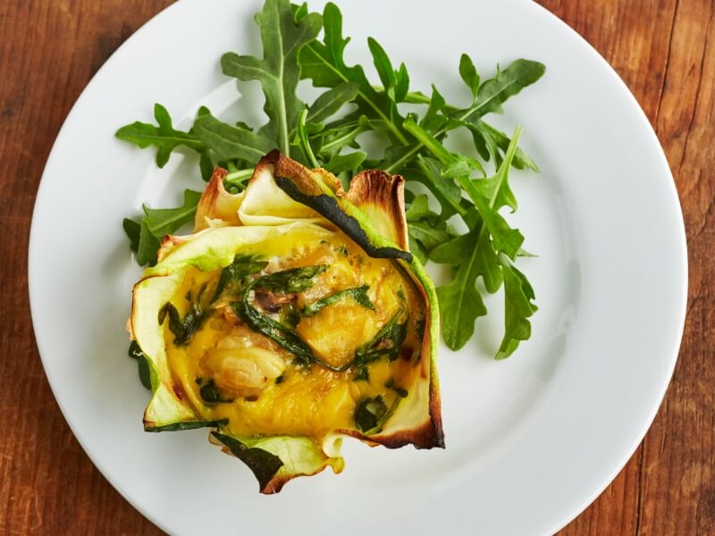 Spiralized sweet potatoes hold this eggy, spinachy, cheesy frittata goodness together. Serve them with a little fresh fruit and a bubbly mimosa for an elegant weekend breakfast or brunch.