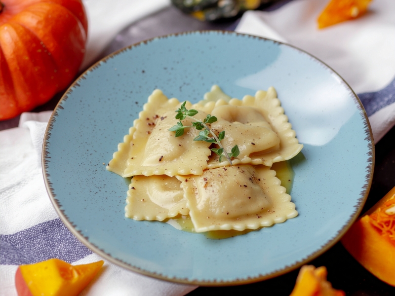 Invite a burst of fall flavors to the table with this unique stuffed pasta dish. Knead pasta dough to the perfect consistency when you outfit a KitchenAid® stand mixer with the Dough Hook Accessory, then prepare pasta for shaping into ravioli squares with the KitchenAid® Pasta Roller Attachment. Stuff homemade ravioli shells with a creamy filling of ricotta cheese, pumpkin purée, dried sage, nutmeg and more. For large batches, consider using a bowl-lift stand mixer from KitchenAid brand to evenly knead pasta dough.
