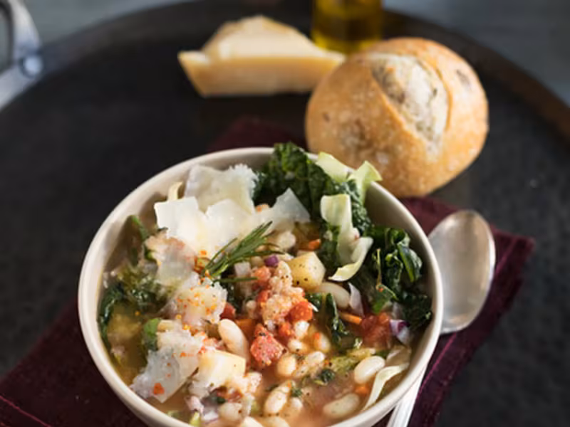 Leftover bread adds a creaminess to this soup that’s made with nourishing vegetables to create a richly-flavored one-pot meal.
