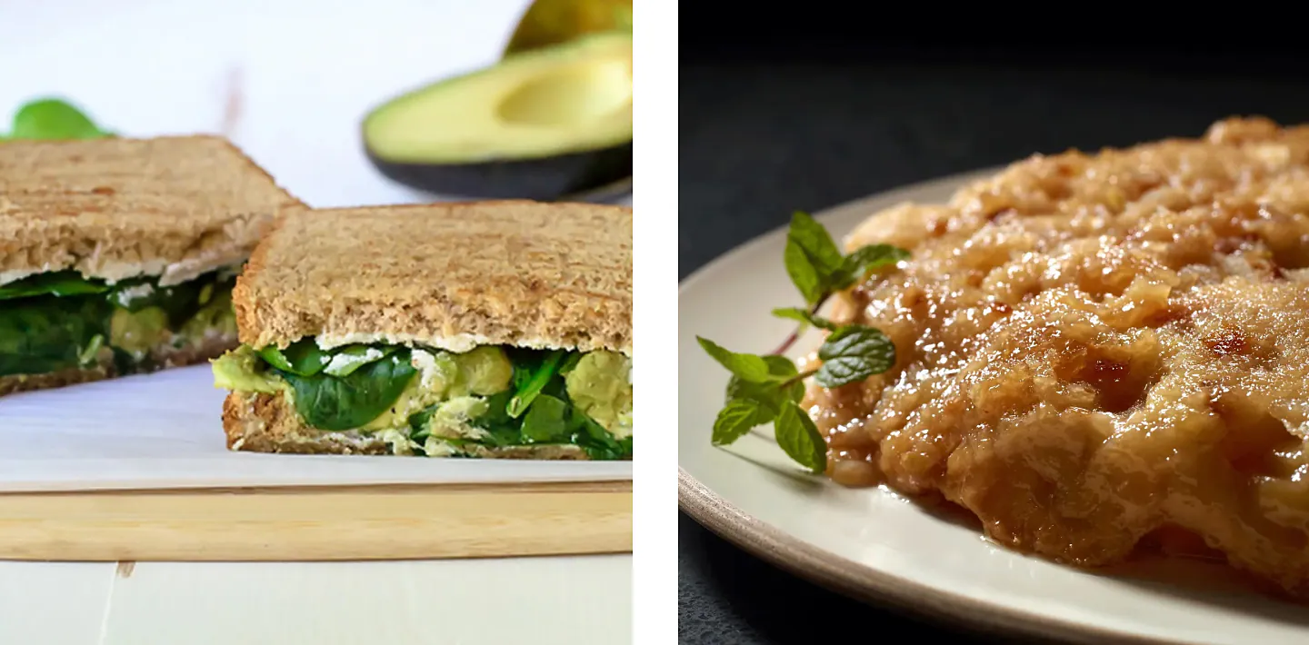 To make a delicious French toast breakfast with fillings and toppings that are either sweet or savory like ham and Swiss, you can use leftover bread.