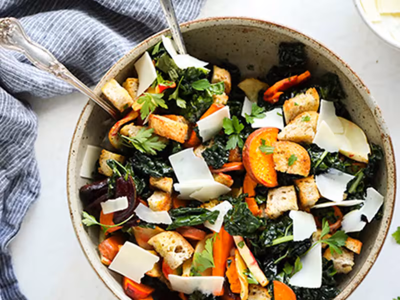 Panzanella is a versatile chopped salad that can be made with a variety of fresh veggies, yet uses stale bread as one of the key ingredients