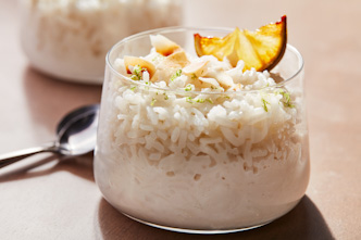 Add the coconut milk, water, sugar, salt, and lime zest to the toasted coconut and stir to incorporate. Increase the heat to medium high and bring the mixture to a fast simmer, then reduce heat back to medium. Scoop in the cooked rice and half of the toasted coconut, then reduce heat to medium low, cover and cook until thick and the pudding has thickened to desired consistency, stirring occasionally, 4-6 minutes longer.