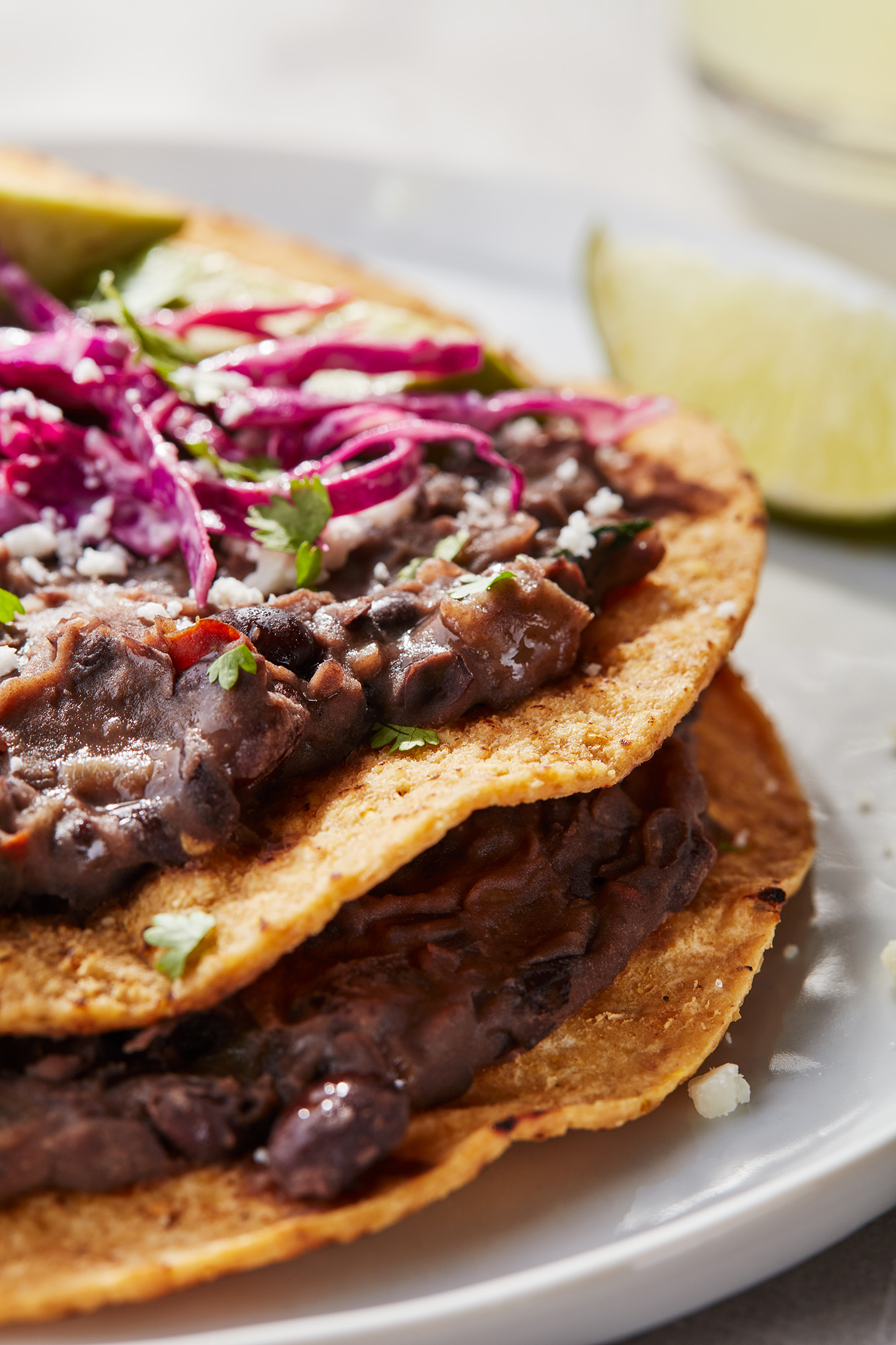 When beans are desired consistency, turn off heat and stir in minced cilantro, salt, and lime juice.