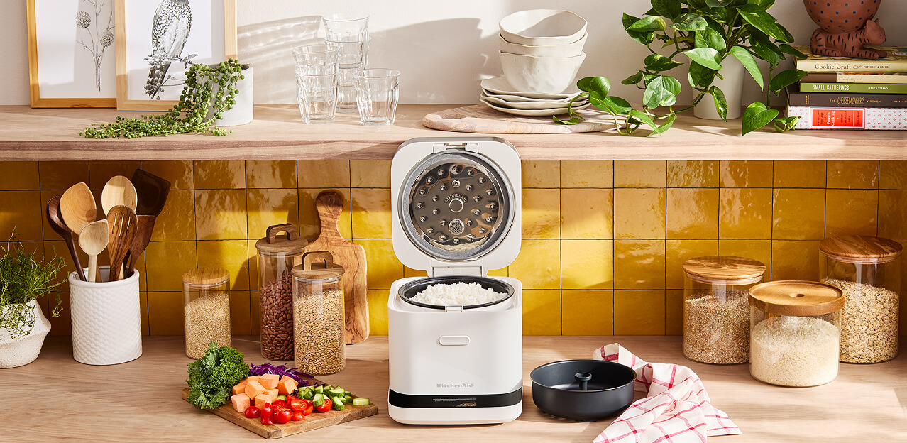 ‡‡Ends 4/13/2026 11:59PM EST. Excludes in-home delivery products. Discount taken off sale price excluding taxes, shipping, gift wrapping, and engraving. Only valid for new grain and rice cooker orders on kitchenaid.com. Offer subject to change. No cash value. Cannot be combined with other offers or rebates