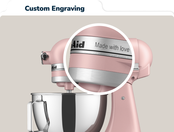 *Ends 4/25/2025 11:59PM EST. Only valid for new engraved stand mixer orders on kitchenaid.com. Excludes closeout, commercial, and refurbished models. While supplies last. Offer subject to change.