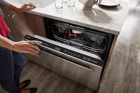 provides the quietest cleaning available from KitchenAid® Dishwashers, so there’s no need to wait to run a wash cycle while entertaining and enjoying meals, even in open concept kitchens.