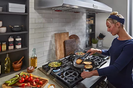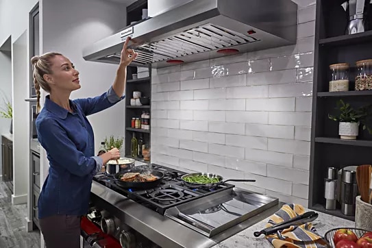 Provides intuitive assistance to help keep smoke and steam from building up in the kitchen. If the hood's sensor detects high-heat cooking on multiple burners while the controls are off, it will automatically turn on the fan and set it to Power Boost.