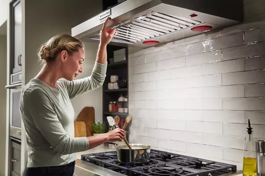 Provides intuitive assistance to help keep smoke and steam from building up in the kitchen. If the hood's sensor detects high-heat cooking on multiple burners while the controls are off, it will automatically turn on the fan and set it to Power Boost.