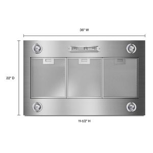 This 36-inch custom hood liner allows you to conceal ventilation within cabinetry or a decorative hood cover, creating a style all your own. Choose from two compatible blower motor options (sold separately) for complete customization of your ventilation system. A 65,000 BTU rating allows this hood liner to pair with 36-inch ranges or cooktops of comparable output.