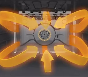 Circulates heat around the oven cavity with a 1200-watt convection element that allows baking at temperatures up to 450° F.