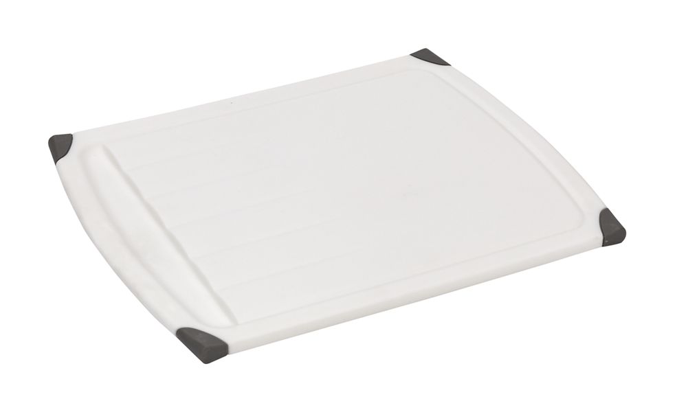Reversible Cutting Board (11 X 14)Model 8171456 Reversible Cutting Board is a solid polypropylene board that has non-skid, non-scratch corner pads to protect your counters. Treated with the antibacterial agent Bactonix® to inhibit the growth of bacteria, this cutting board reverses to a carving side with ridges and a drain for juices. Dishwasher safe design. Using this accessory will require no disassembly or repair experience.