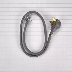 4' Electric Range Power Cord rated 50 A, with 3-wire 3-ring terminal connectors, and right-angle 3-prong plugThis Electric Range Power Cord is a UL-listed accessory that measures 4' L and features a 3-wire, 50-amp design. The power cord connects the range to the wall outlet and supplies electricity to the appliance. Installing this item will require basic hand tools, but no disassembly of the appliance or repair experience. Remember to unplug the range or shut off the house circuit breaker for the appliance before installing this part.