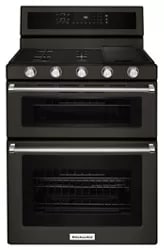 30-Inch 5 Burner Gas Double Oven Convection RangeThis beautiful gas double oven range produces flawless cooking results with Even-Heat™ True Convection. The unique bow-tie design and convection fan ensure the inside of the entire oven is heated to, and stays at, the perfect temperature. The oven is a combined 6.0 cu ft., providing a large capacity that’s perfect for preparing multiple dishes at once. The cooktop has 5 burners ranging from 5,000 to 17,000 BTU, letting you go from a rolling boil to a delicate simmer.*Max Capacity Rack sold separately, W10554006. Griddle sold separately, W10432544.