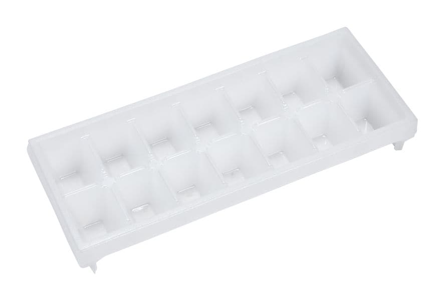 Plastic Refrigerator Ice Cube Tray - WhiteModel WP841180A white plastic refrigerator ice cube tray. The refrigerator ice cube tray is a replacement part that can be used with any freezer. The tray is constructed of durable white plastic and has 14 ice cube molds. Note that the easiest way to release the cubes from the tray is to use a twisting motion on both sides. Multiple ice cube trays can be stacked on top of each other; each tray is sold separately. Replacing this part will require no disassembly or repair experience.