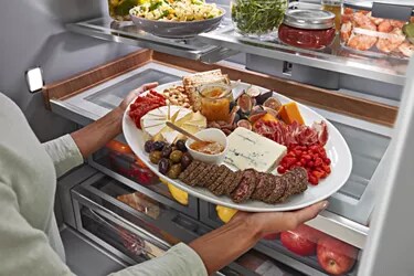 Brings premium style inside the refrigerator to complement the quality ingredients you keep on hand. Sleek silver colored walls accented by metallic trim on shelves, drawers and door bins offer a step up from the standard white interior.